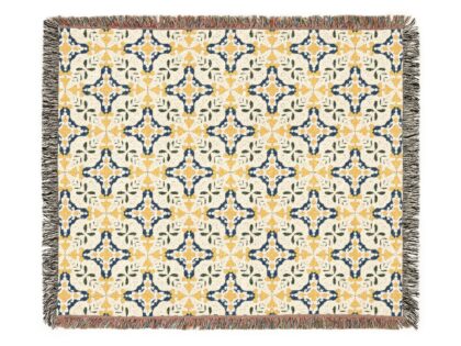 Plaid en coton tissé Azulejos Jaune & Bleu