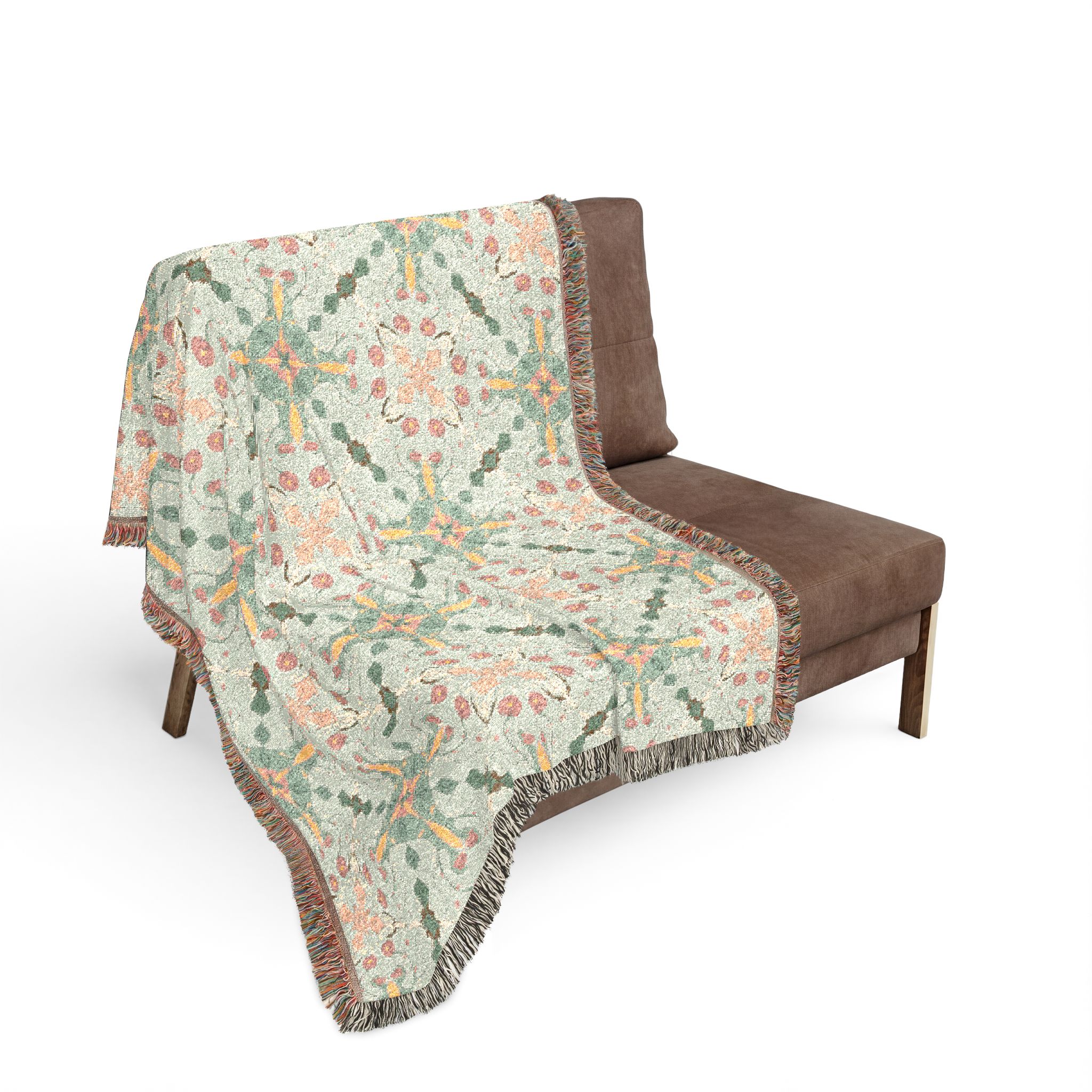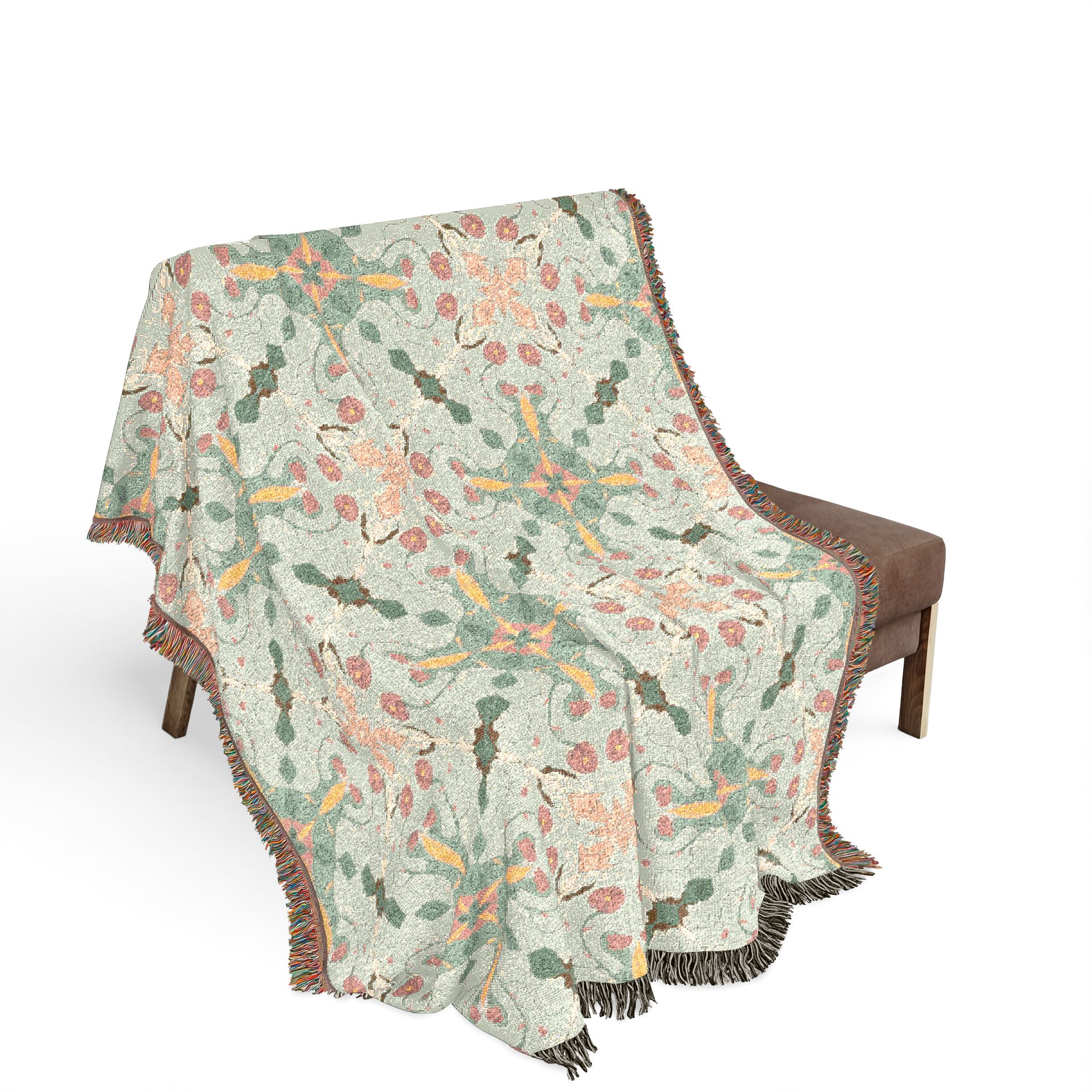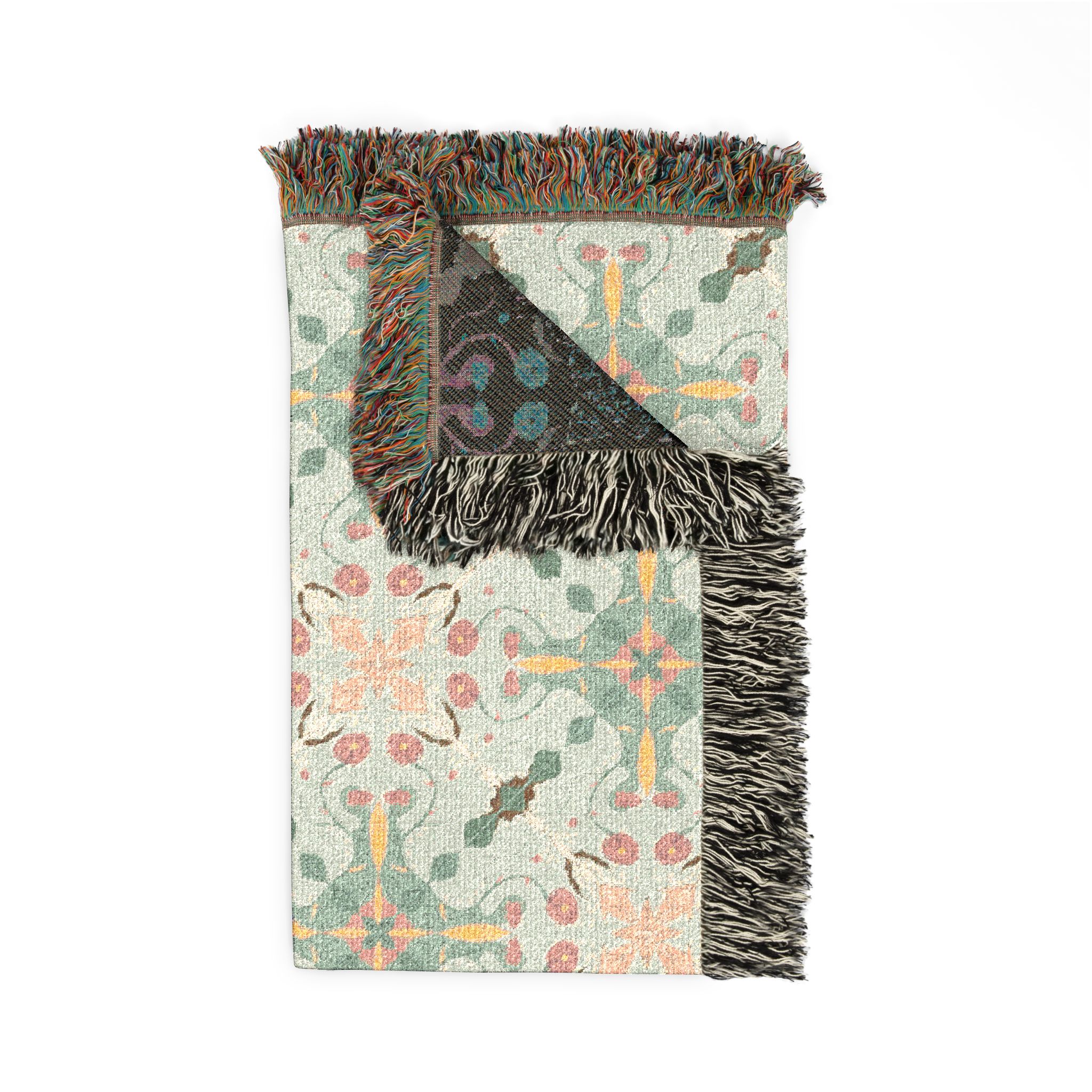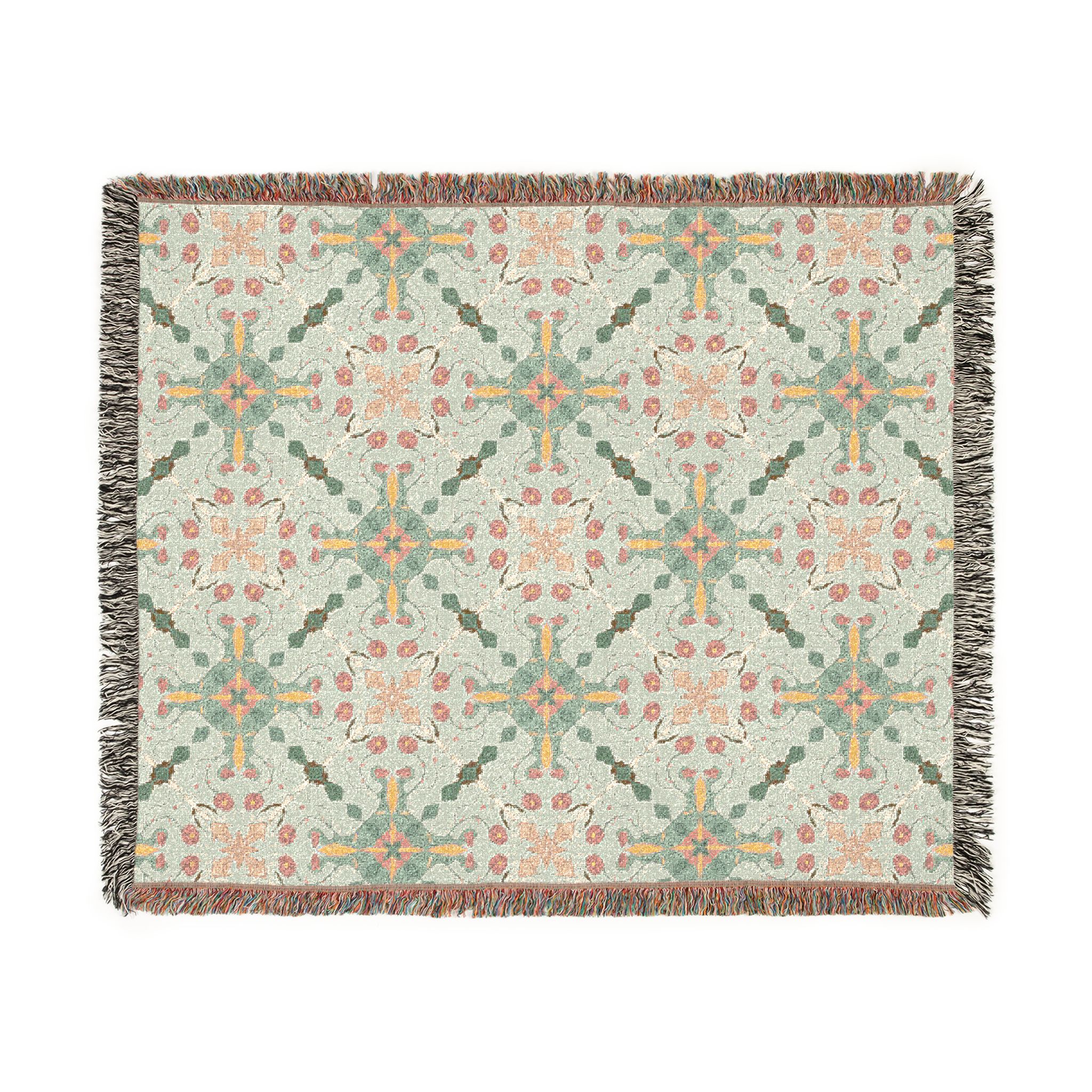 Apportez chaleur et caractère à votre intérieur avec ce plaid en coton tissé 100 % coton, entièrement designé par Rugaso, motifs ornementaux sur fond vert sauge. Ses détails subtils aux teintes corail et ocre. Son motif unique et son tissage dense offrent une tenue élégante tout en restant doux et souples, parfaits pour un canapé, un lit ou un fauteuil. Les franges décoratives viennent sublimer son style cosy et intemporel.